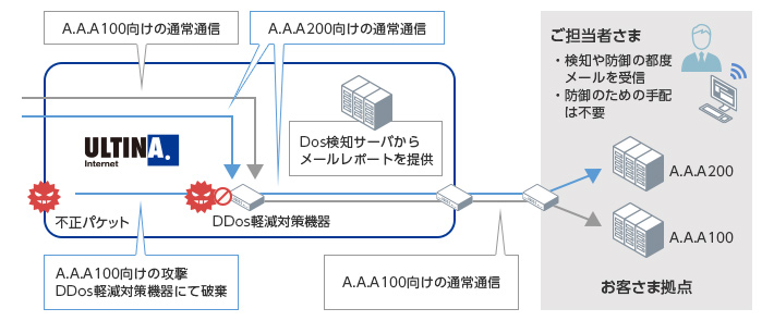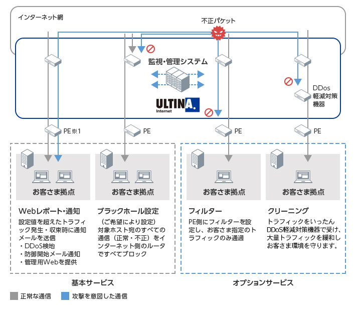 ULTINA Internet回線をDDoS攻撃から防御するサービスです。