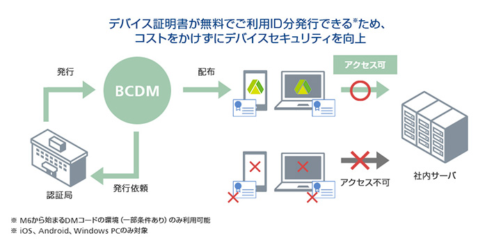 デバイス証明書が無料でご利用ID分発行できるため、コストをかけずにデバイスセキュリティを向上