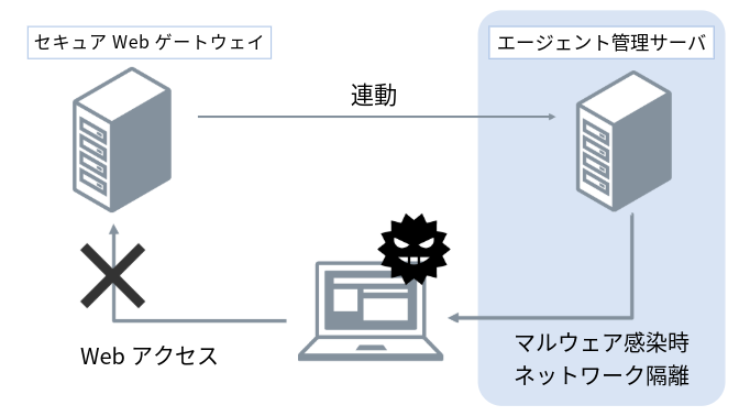 マルウェア感染したPC端末を特定し、ネットワークから自動で隔離します。インシデント対処において重要な初期対処を自動化することで、被害の拡大を最小限にとどめることが可能です。