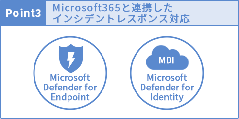 | 標準 | 他製品連携 | MDIで発生したアラート内容に応じて、お客さまのご依頼により、他Microsoft365製品で対処(ネットワーク隔離やパスワードリセットなど)を実施します。※ |