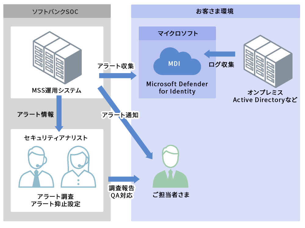 ソフトバンクではMDIを利用するお客さま環境に対して、監視、調査、インシデントレスポンスといった