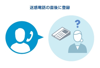 迷惑電話を受けた直後、お客さまに電話から登録操作を行っていただくことにより、以後、同じ電話番号からかかってきた場合に、着信を規制するサービスです。