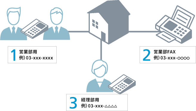 ISDN番号追加サービスは、今お使いの電話番号を含め、最大3つ(2つも可)の電話番号を利用できるので、電話機やFAXで番号を使い分けることができます。