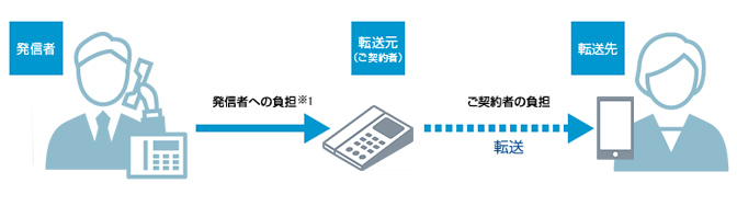 • 転送元がフリーコールスーパーの着信課金番号(0120番号等)で電話を受けた場合は、ご契約者のご負担となります。