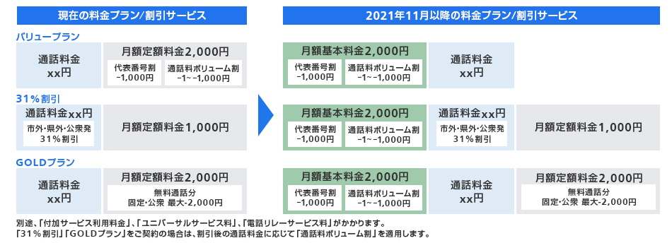 31%割引、GOLDプランのご利用には従来通り月額定額料金が必要です。2021年11月より設定させていただくフリーコールスーパーの月額基本料金とは異なりますのでご注意ください。