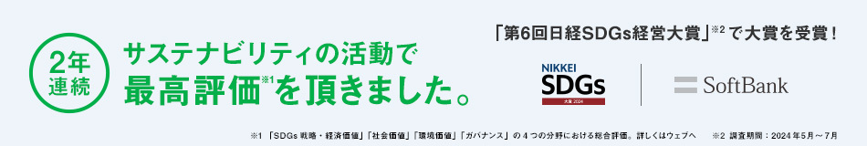 期間中に「ソフトバンクでんき for Biz 低圧」にお申し込みされたお客さま限定で、環境オプション分を最長2年間※全額無料償とさせていだきます。再エネの導入を検討中の方はぜひお問い合わせください。