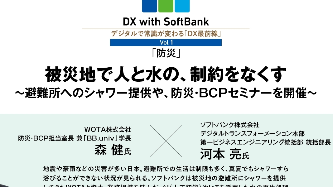 現在世界の人口の約3分の1が水不足に直面していると言われており、2050年には全世界の約半数近くに拡大すると予測されています。 日本の水道事業維持においても、人口減少を起因とした収入減、管路の老朽化など、多くの課題を抱えています。 その中でソフトバンクは、水処理における優れた技術をもつWOTA株式会社とパートナーシップを組みテクノロジーの力でこの課題に対峙。自律分散型水インフラ産業の創出を目指します。