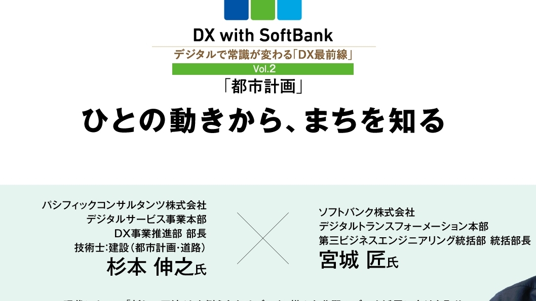 交通の混雑・渋滞、頻発する自然災害など日本の各都市が抱える課題はさまざまです。ソフトバンクは、スマートインフラという考え方を通じてこれらの課題解決に取り組みます。 そのひとつとして、パシフィックコンサルタンツとの共創により人流統計サービス「全国うごき統計」をリリースしました。人の移動に関するデータを可視化することで、渋滞対策や防災計画、さらには観光地の活性化などを支援します。
