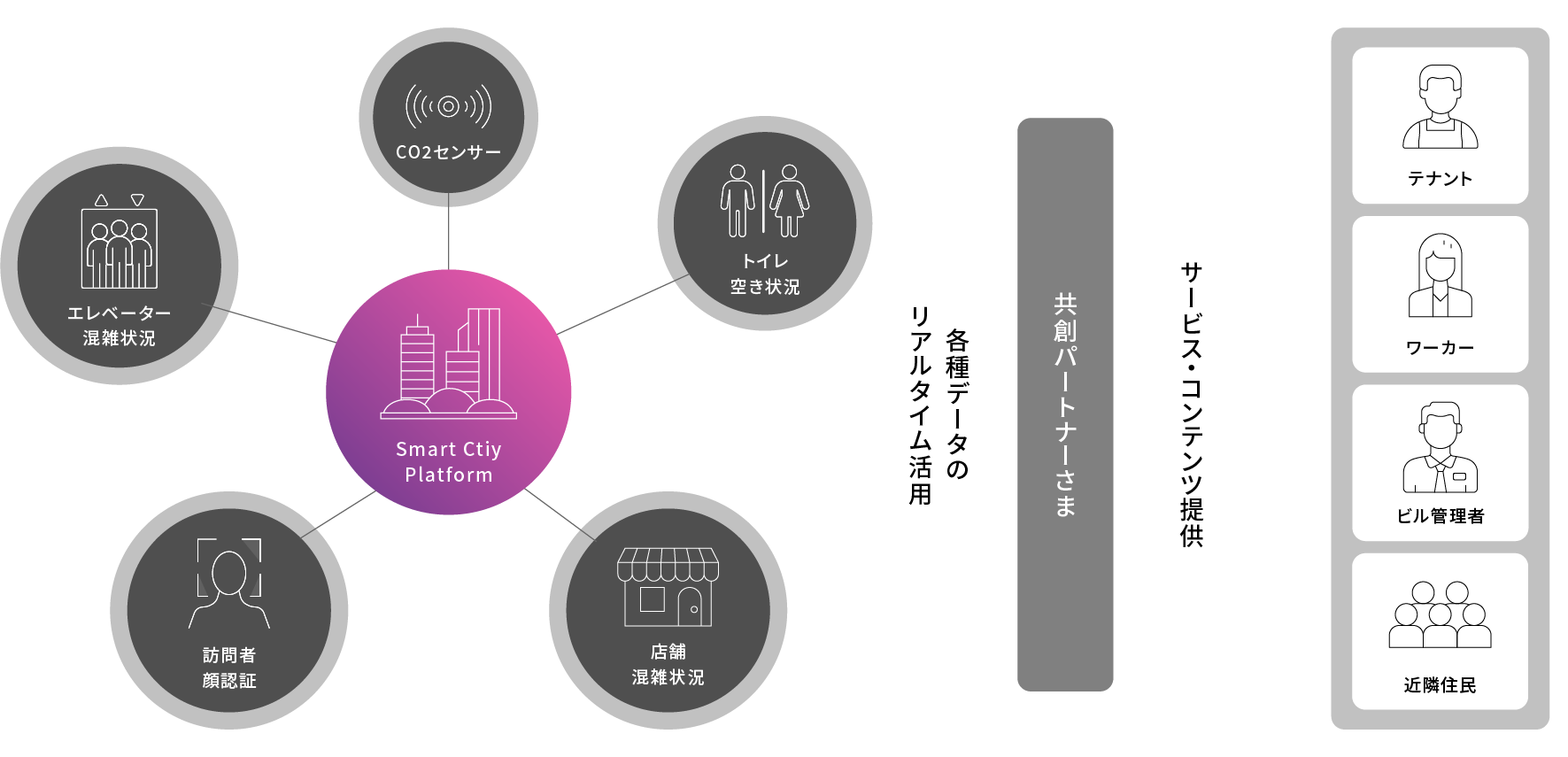 防災やモビリティなど、建物間を連携するデータソリューションを展開