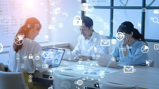 組織として社用端末を導入し、セキュリティ対策や利用可能なアプリケーションなどを管理できるデバイス管理ソリューションを活用することで、私用端末や個人利用のクラウドサービスなどを利用した内部不正リスクは低減できます。