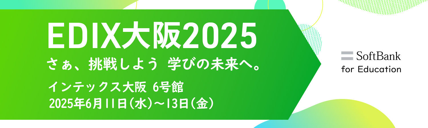 私たちは教育に関わるすべての方々に伴走します。共に未来の学校を創造しましょう。 EDIX大阪2025。ソフトバンクのブースへどうぞお越しください。たくさんの魅力的なセミナー、新たなソリューションをご準備し、みなさまのお越しをお待ちしています。