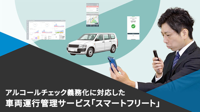 アルコールチェックと車両運行管理をまとめて行える「スマートフリート」について詳しくご紹介します。