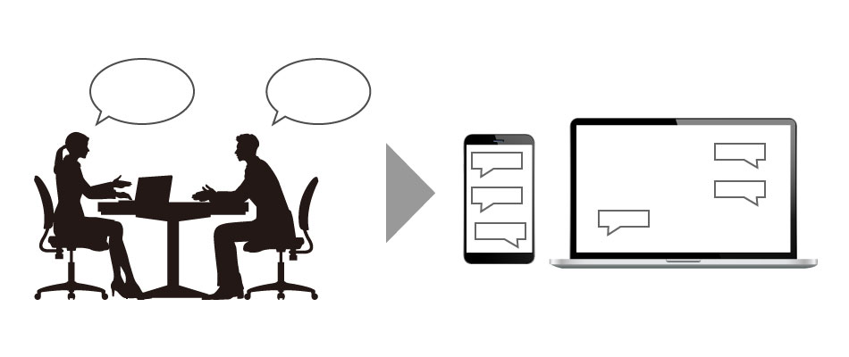 普段スマホでチャットをお使いの皆さまはご存知の通り、チャットはメールと比べて早いレスポンスが求められます。ビジネスシーンでもチャットを用いることで、素早いコミュニケーションが実現可能です。