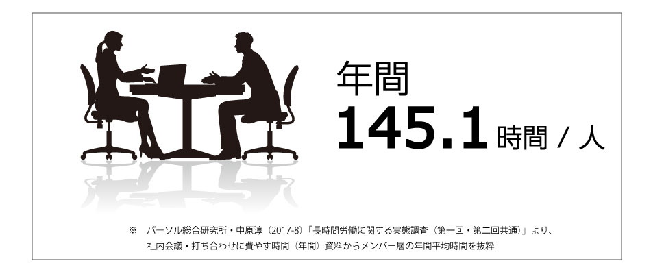 アンケート調査によると、担当社員一人あたり年間154時間が会議に使われています。皆さまが出席している会議の中にも、多少の工夫で不要となる「ムダな会議」があるかもしれません。
