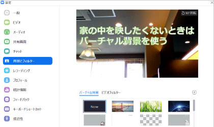 家の中を映したくないときは「バーチャル背景」が便利です。