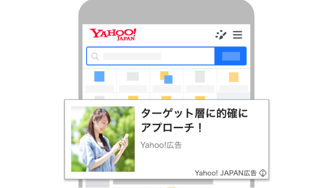 Yahoo!JAPANのトップページやYahoo!ニュースに広告を表示できます。画像や動画を使った視覚的な訴求ができ、商品の説明や認知度の向上に最適です。「検索広告」だけでは接触できない場合に、「ディスプレイ広告」を併用することで、より有効的にインターネットユーザーへアプローチできます。