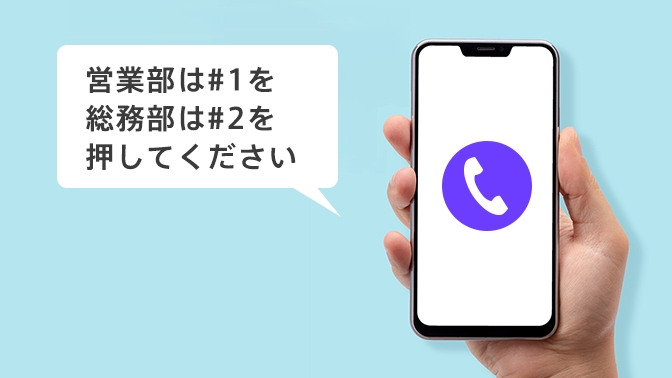 かかってきた電話にあらかじめ用意した音声案内を流し、「営業部は#1を、総務部は#2を押してください」と番号入力を促すことで電話の一次受付を不要にします。