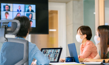 自宅や外出先からリモートで会議に参加し、メンバーの顔を見ながら問題の共有や解決策を話し合うことができます。