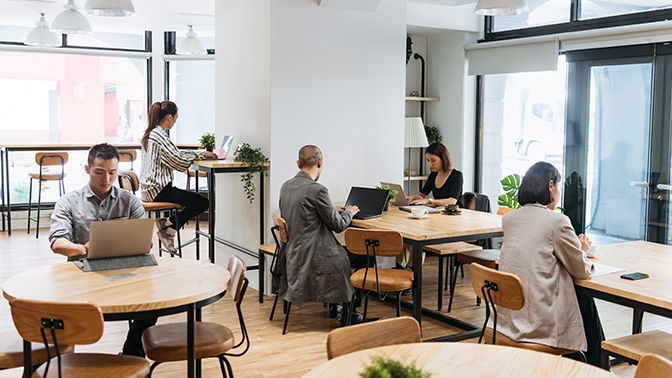 自宅での環境が整備できない、業務に集中できないなど、在宅勤務が難しい場合は、自宅に近いサテライトオフィスなどの利用が効率的です。場所が変わることにより気持ちもリフレッシュできるため、パフォーマンスと生産性の向上が期待できます。