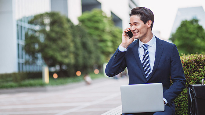 モバイルワークとは、外出先・移動中など、オフィスや自宅以外で主にモバイル端末を使用して業務を行う働き方です。