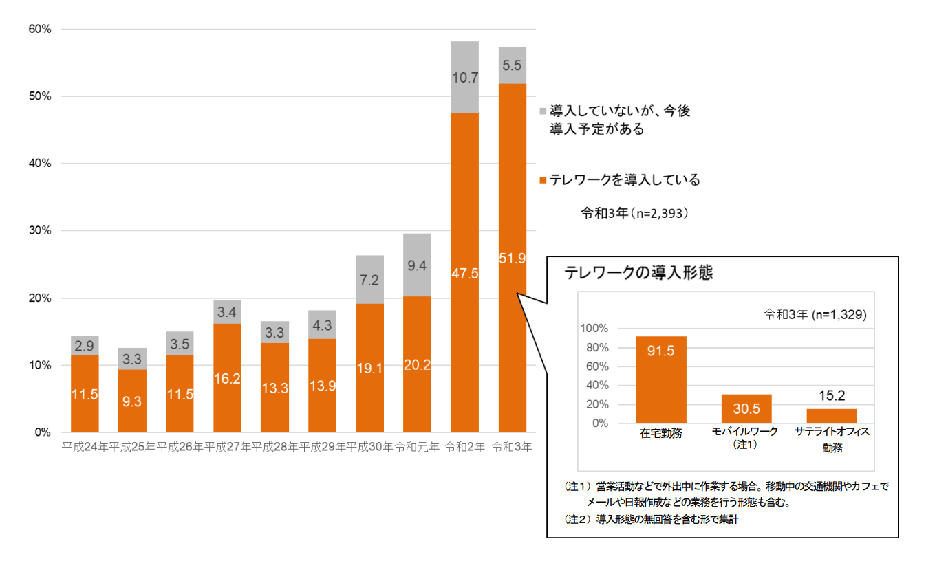 テレワークの導入状況 総務省「令和3年通信利用動向調査」より