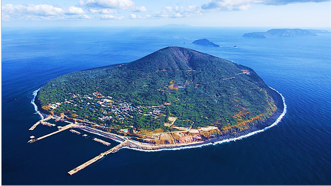 利島村は人口約300人、面積は約4.04㎢の日本で4番目に小さい自治体です。島の北部に港と集落があり、以外の土地はほぼ椿の木々に覆われた自然豊かな島です。