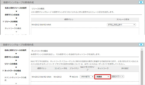 その後、その仮想マシンに接続するネットワークを選択します。(事前にネットワークを作成してください)