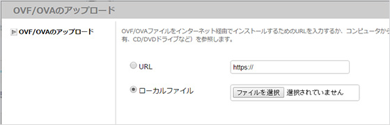 OVAファイルは(Open Virtualization Format Archive)の略で、仮想マシンイメージを1つのファイルとして扱うことが可能です。これにより異なる環境同士でも、仮想マシンをイメージとして扱うことで、相互にやりとりができるようになっています。事前に準備いただくのは、OVA形式のファイルだけです。(2017年2月現在:OVF形式ファイルを利用する場合には、zip形式にファイルを圧縮して、アップロードが必要となります)