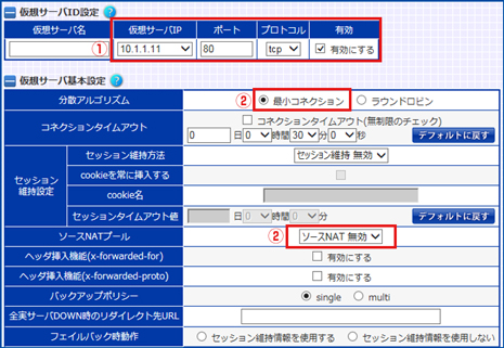 1. 仮想サーバ(外部から見たアクセス用サーバ)設定