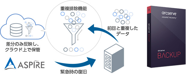 重複排除技術により、前回からのバックアップと重複したデータを可能な限り取り除くことが可能です。
