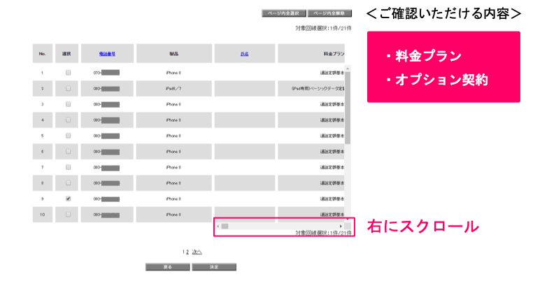 ご契約中の料金プランや割引サービス、オプションサービスを確認できます。