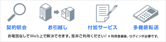 契約紹介、多機能転送サービス設定、付加サービスの変更やお引越し時のお手続きなど行うことができます。