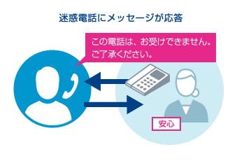 迷惑電話を受けた直後、お客さまに電話から登録操作を行っていただくことにより、以後、同じ電話番号からかかってきた場合に、着信を規制するサービスです。