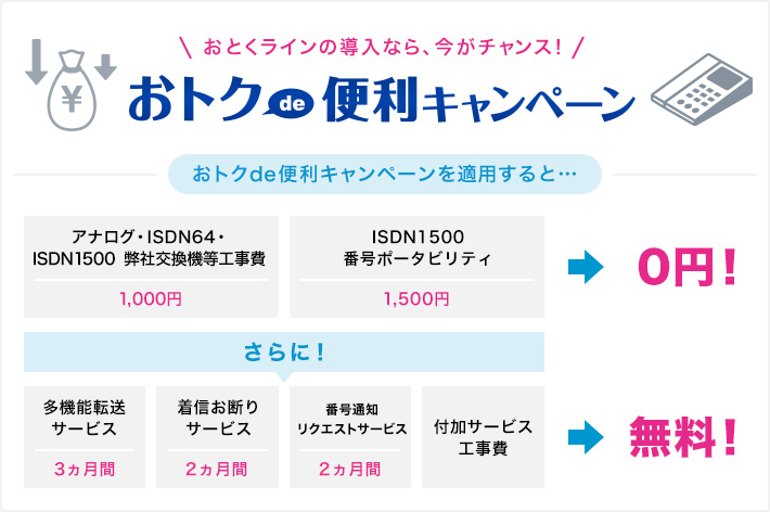 PRI(おとくラインISDN1500)の番号ポータビリティ工事費が無料!