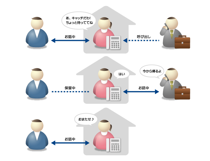 通話中に着信を通知して、別の電話に応答することができるサービスです。