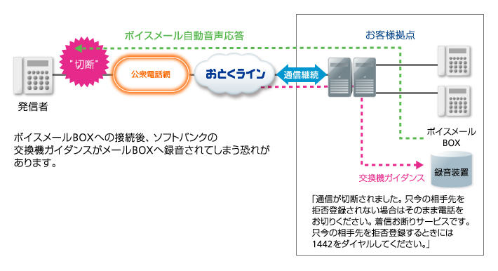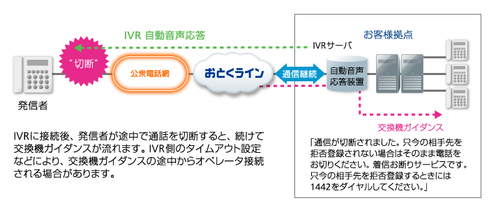 着信お断りサービスは、迷惑電話を受けた直後、電話から登録操作を行うことで、以後同じ電話番号からかかってきた場合に着信を規制するサービスです。