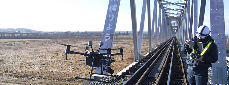 鉄道施設の検査業務における安全性向上と効率化を ドローンと高精度位置情報を活用して実現