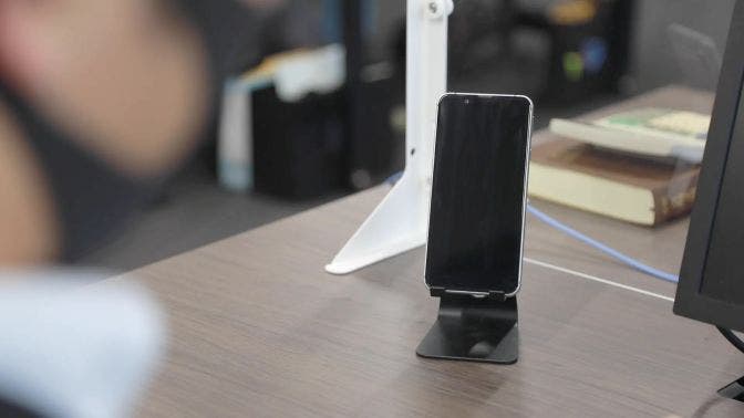 電話に気付きやすいようにスマホスタンドを一緒に貸与。
