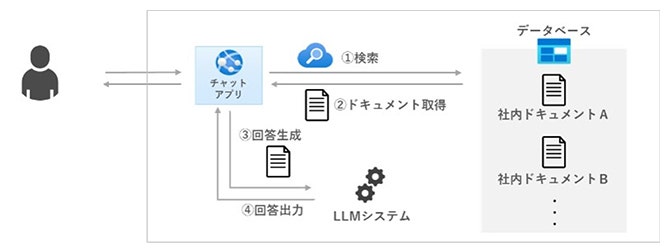 LLM(Large Language Models):大規模言語モデルと呼ばれるテキストの読解・生成に長けた人工知能の一種。RAG(Retrieval-Augmented Generation)複数のデータベースから情報を検索・統合し、それをLLMが自然言語として処理を行う技術のこと。