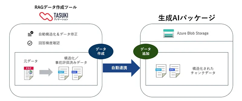 課題解決のために着目したのが、ソフトバンクが提供する「データ作成ツール」でした。同ツールは、RAG(検索拡張生成)を前提とした構造化データの作成を支援するもので、生成AIと組み合わせて利用することで、ナレッジの検索回答精度を高められるソリューションです。