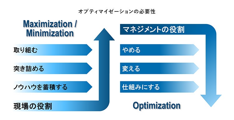 それに対して、欧米の考え方はオプティマイゼーション。欠品率が1%あってもそれで在庫が減るならば全体の利益は上がる。そういった全体最適化のために割り切る文化です。