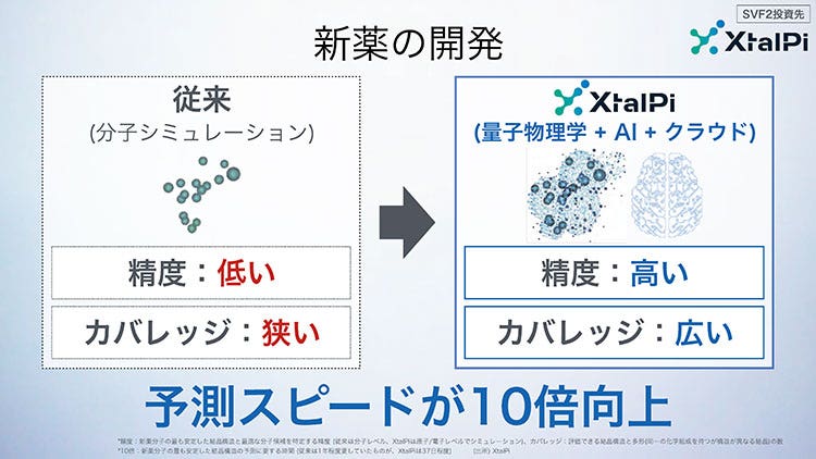 新薬の開発にAIを導入しているのが「XtalPi」だ。新薬開発における従来の分子シミュレーションは精度が低く、予測にも時間がかかっていた。同社ではAIと量子物理学とクラウドを組み合わせることでそのプロセスを10倍のスピードに向上した。