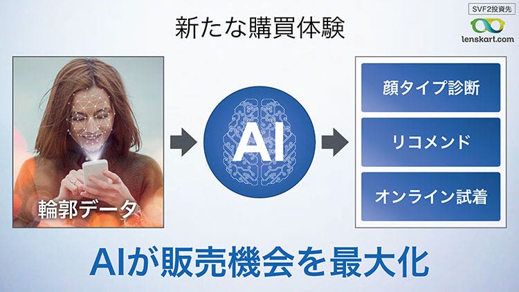 アプリでユーザの輪郭データを読み取り、視力や目からカメラまでの距離をAIで測定し、どのように眼鏡が顔にフィットしているかをリアルタイムで表示するほか、顔のタイプや大きさに合わせてオススメの商品も提示してくれる。手軽な価格後でわずか1〜2日後にカスタムメイドされた眼鏡が自宅に届くことから急成長している。