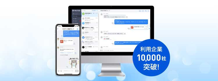 「ビジネス版LINE」です。PCはもちろんモバイル端末でも利用できます。「LINE」と同じようなチャット機能やインターフェースなので、幅広い利用者になじみがあり、操作を覚えやすいのが利点です。スタンプ機能を活用すれば、和やかな雰囲気でコミュニケーションをとることができます。チャットやメールのほか、音声・ビデオ通話機能、アドレス帳、ホーム(掲示板)、カレンダー、ファイルを保存・共有できるDrive、アンケートなど、毎日の業務をより便利にする多彩な機能を備えています。
