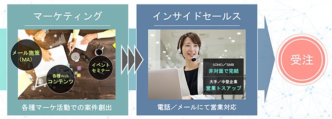 こうした受注までの一連の流れはインサイドセールスとマーケティング、そしてフィールドセールスが連携することで実現しています。