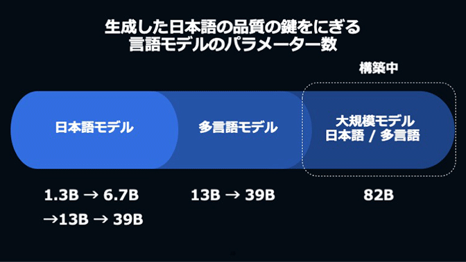 ただ、こういったものは英語圏ではすでに行われています。ですが、日本語は文字の種類が多い、方言や敬語がある、主語や目的語が省略される、など構造化が難しい言語です。それを克服するために日本語の大規模汎用言語モデルを構築中です」(砂金氏)