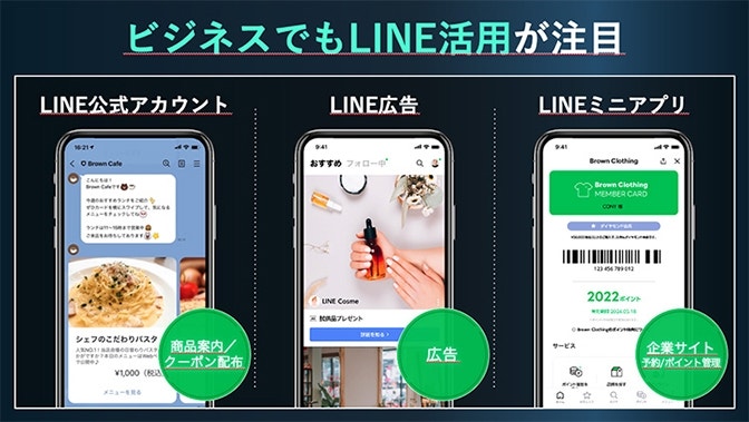 「ビジネスでいえばタッチポイントとしての活用が増えています。例えば、LINE公式アカウントを通じた消費者とのダイレクトなコミュニケーションや、多彩な出面をもつ『LINE』への広告出稿、そしてLINEミニアプリを窓口とした自社アプリへの誘導といったものです」(藤長)