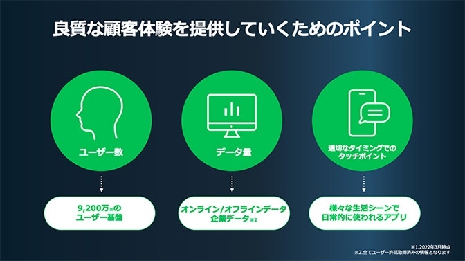 「まずプラットフォームにたくさんのユーザーがいないとコミュニケーションは成り立ちません。そして、そのユーザーを理解するためには大量のデータが必要です。さらに、ユーザーとのコミュニケーションをつないでいくためには多くのタッチポイントが存在しないといけません。