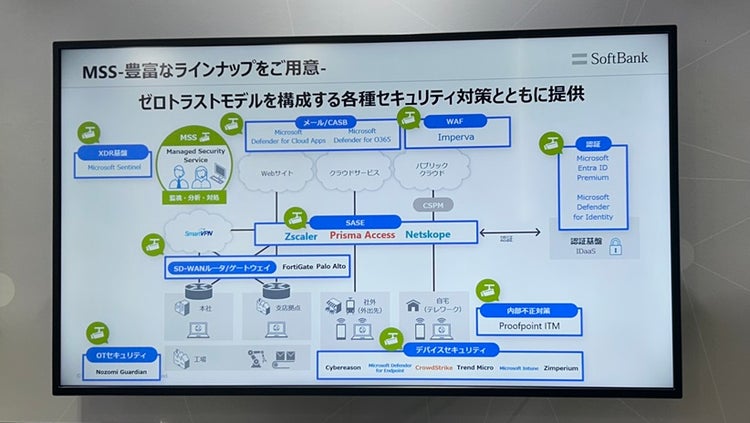 ブースでは、Microsoft Sentinel などのSIEM基盤を活用した監視の仕組みや、インシデント対応フローが紹介されていました。ソフトバンクのMSSでは、不審な通信のブロックや感染端末隔離も行えると解説していました。