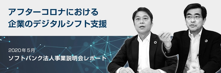 ソフトバンクは、2020年5月20日、法人事業に関する説明会を開催。代表取締役 副社長執行役員 兼 COOの今井康之と常務執行役員の藤長国浩が、新型コロナウイルス感染症の影響下での事業継続を支援する各種ソリューションと、法人事業での5G戦略について語った。